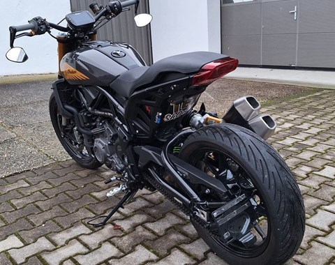 Zum Verkauf steht unsere Indian FTR 1200 S mit Erstzulassung im August 2019. Das Fahrzeug aus dritter Hand ist um- und unfallfrei und befindet sich den Kilometern entsprechend in einem sehr gepflegten Zustand. Zur Auslieferung machen wir noch eine neu Inspektion und die HU (TÜV) neu. Auch alle Verschleißteile befinden sich in gutem Zustand. Zu unseren Geschäftszeiten können Sie das Fahrzeug besichtigen und nach vorherhiger Absprache auch Probefahren. Bei weiteren Fragen stehen wir gerne zur Verfügung.