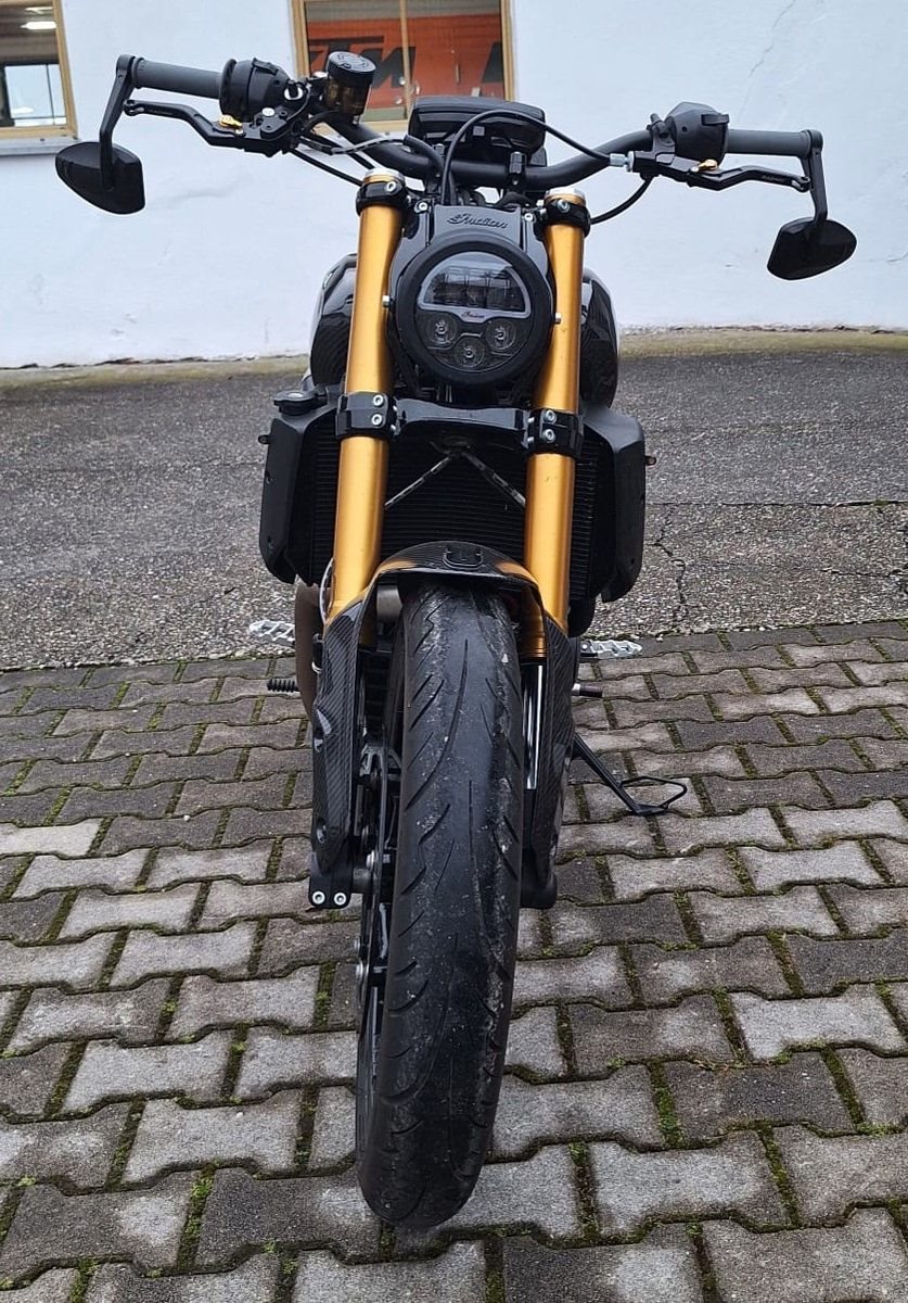 Noch nie war eine Mogelpackung so cool wie die Indian FTR 1200! Der optische Flat Tracker-Stil macht sie einzigartig und begehrenswert, die seltene Bereifung wirkt sich aber keineswegs negativ auf die Fahrdynamik aus. Das macht aus der FTR 1200 ein gut fahrbares Naked Bike, das auch auf schlechten Straßen eine gute Figur macht. Der Motor ist kräftig genug, die Bremsen gut, die Sitzposition angenehm und die Gesamt-Performance (im Trockenen) ausgezeichnet.- Einfaches Handling