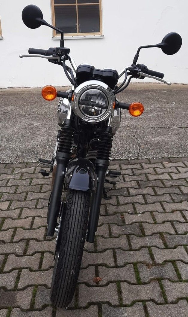Die Meguro S1 ist eine erfrischend ehrliche Fahrmaschine mit klarem Fokus auf klassisches Fahrgefühl und anständiger Fahrdynamik.- sehr gutes Gefühl für die Front
