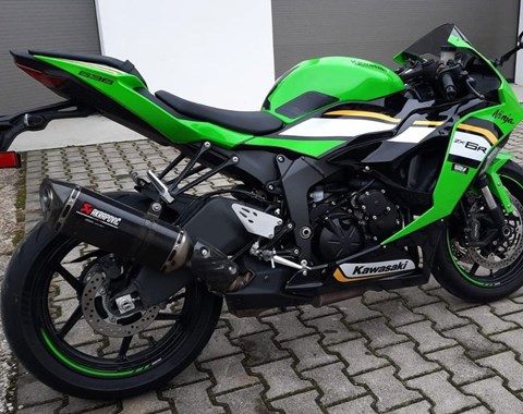 Zum Verkauf steht unsere Kawasaki Ninja ZX-6 R Performance mit Erstzulassung im April 2025. Das gepflegte Vorführfahrzeug ist um- und unfallfrei und befindet sich den Kilometern entsprechend in einem neuwertigen Zustand. Das Performance Paket im Wert von 1.650€ ist im Fahrzeugpreis inbegriffen. Die 1.000km Inspektion wurde bereits in unserer Kawasaki Vertragswerkstatt erledigt, dementsprechend läuft die Garantie noch bis 04/2029. Auch alle Verschleißteile befinden sich in gutem Zustand. Das Montierte Zubehör ist im Preis inbegriffen. Zu unserem Geschäftszeiten können Sie das Fahrzeug besichtigen und nach vorheriger Absprache auch Probefahren. Bei weiteren Fragen stehen wir gerne zur Verfügung.