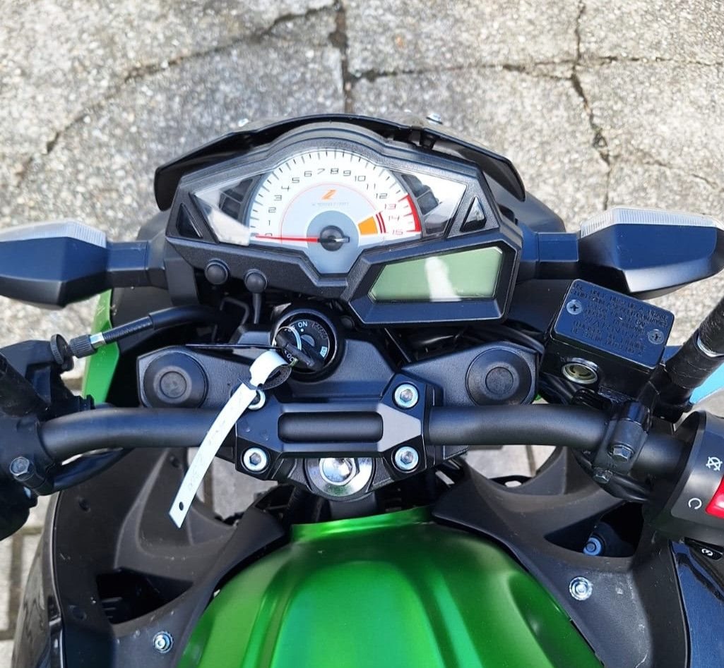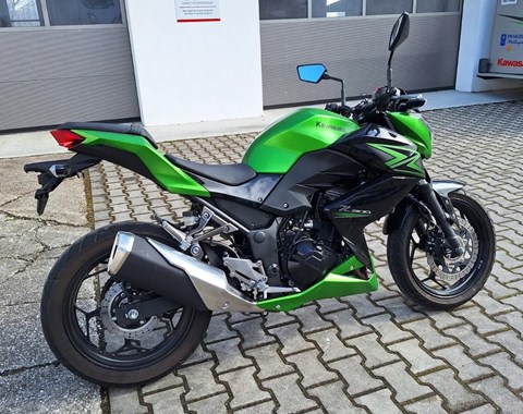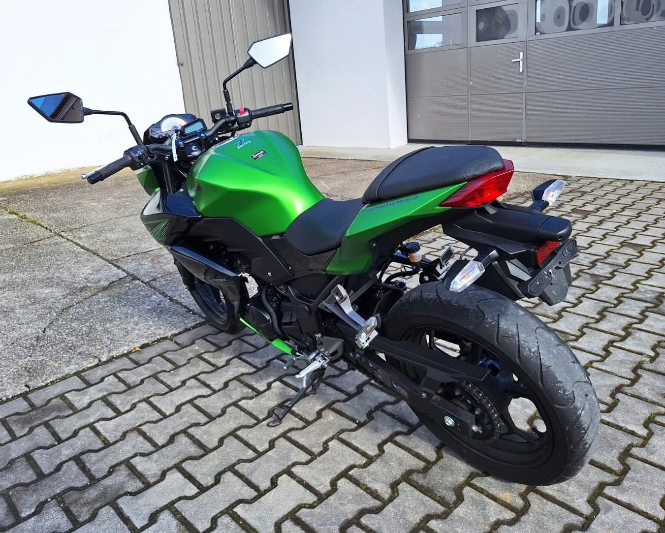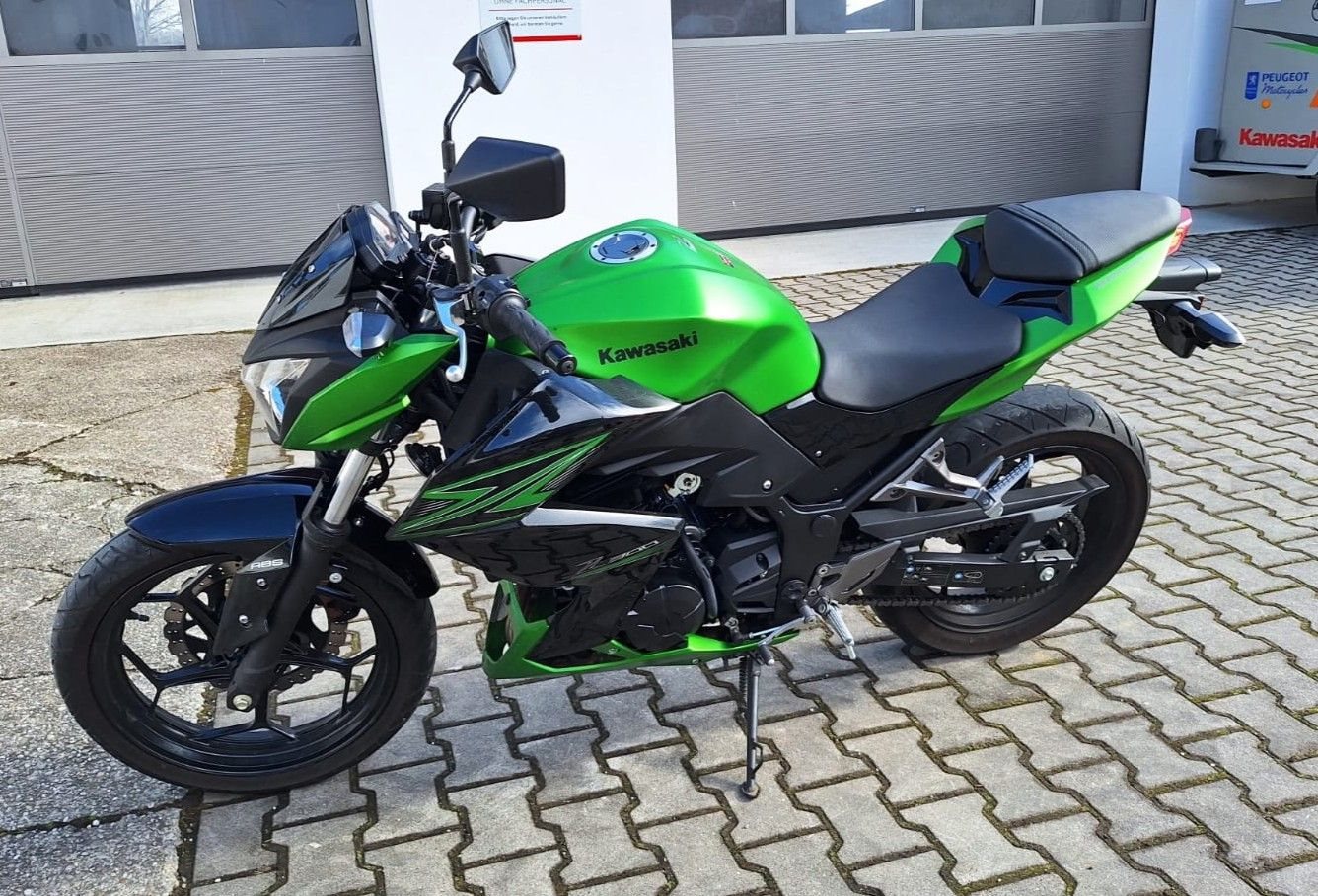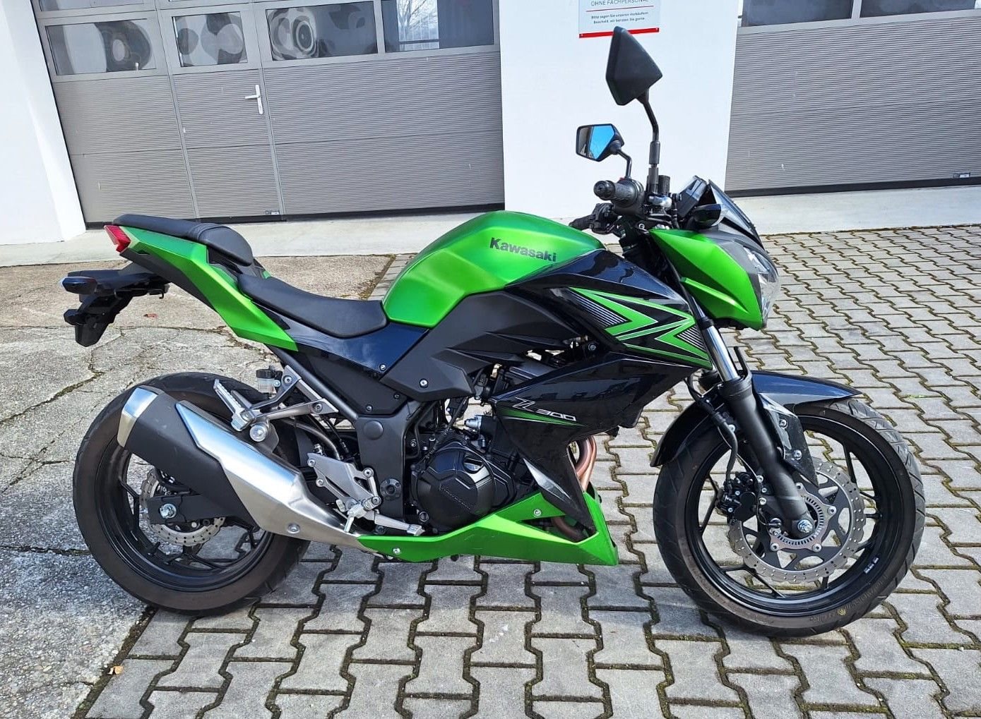 Zum Verkauf steht unsere Kawasaki Z300 mit Erstzulassung im April 2015. Das Fahrzeug aus erster Hand ist unfallfrei und befindet sich den Kilometern entsprechend in einem gepflegten Zustand. Die größere 12.000km Inspektion wurde bereits erledigt, zur Auslieferung machen wir noch eine neue Jahresinspektion mit Öl- und Bremsflüssigkeitswechsel. Beide Reifen sind zudem neu. Auch alle weiteren Verschleißteile befinden sich in gutem Zustand. Durch ein Umfaller nach rechts ist der rechte Bugspoiler verkratzt (Detailfotos können wir auf Wunsch zuschicken). Zu unserem Geschäftszeiten können Sie das Fahrzeug besichtigen und nach vorheriger Absprache auch Probefahren. Bei weiteren Fragen stehen wir gerne zur Verfügung.