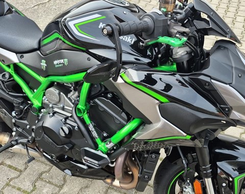 Zum Verkauf steht unsere Kawasaki Z H2 mit Erstzulassung im Dezember 2021. Das Fahrzeug ist um- und unfallfrei und befindet sich den Kilometern entsprechend in einem sehr gepflegten Zustand. Alle Services wurden in unserer Kawasaki Vertragswerkstatt durchgeführt, zur Auslieferung machen wir die größere 12.000km Inspektion noch neu. Die Fahrzeuggarantie wurde vom Vorbesitzer bis 12/2025 verlängert. Auch alle Verschleißteile befinden sich in gutem Zustand, beide Reifen wurde bei ca. 8.000km erneuert. Das unten aufgelistete, hochwertige Zubehör ist im Fahrzeugpreis inbegriffen. Zu unseren Geschäftszeiten können Sie das Fahrzeug besichtigen und nach vorheriger Absprache auch Probefahren. Bei weiteren Fragen stehen wir gerne zur Verfügung.