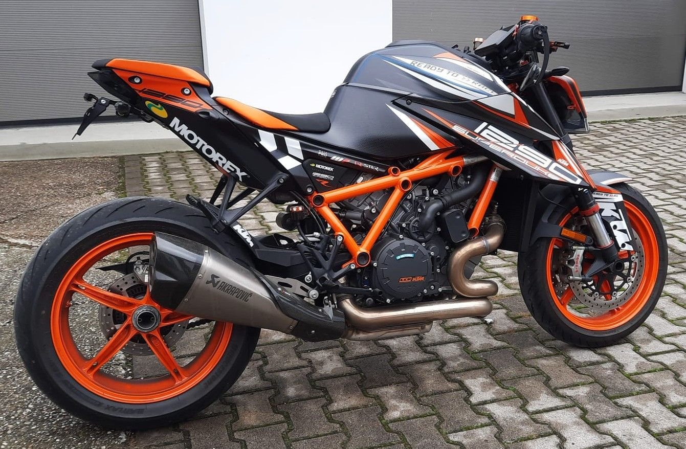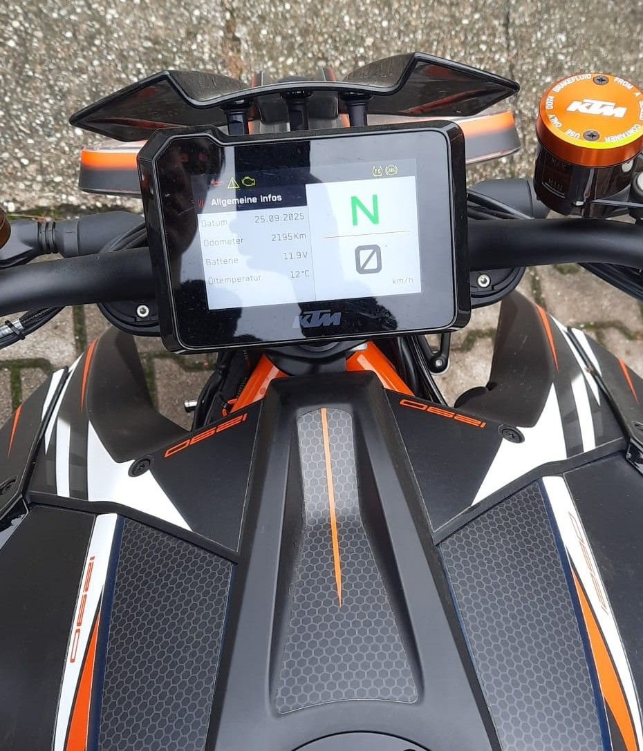 Zum Verkauf steht unsere KTM 1290 Super Duke R mit Erstzulassung im März 2024. Das Fahrzeug aus erster Hand ist um- und unfallfrei und befindet sich den Kilometern entsprechend in einem absolut neuwertigen Zustand. Der 1.000km Service wurde in unserer KTM Vertragswerkstatt durchgeführt, zur Auslieferung machen wir noch eine neue Jahresinspektion mit Öl- und Bremsflüssigkeitswechsel. Auch alle Verschleißteile befinden sich in gutem Zustand. Das unten aufgelistete, hochwertige Zubehör im Wert von über 4.000€ ist im Fahrzeugpreis inbegriffen. Zu unseren Geschäftszeiten können Sie das Fahrzeug besichtigen und nach vorheriger Absprache auch Probefahren. Bei weiteren Fragen stehen wir gerne zur Verfügung.