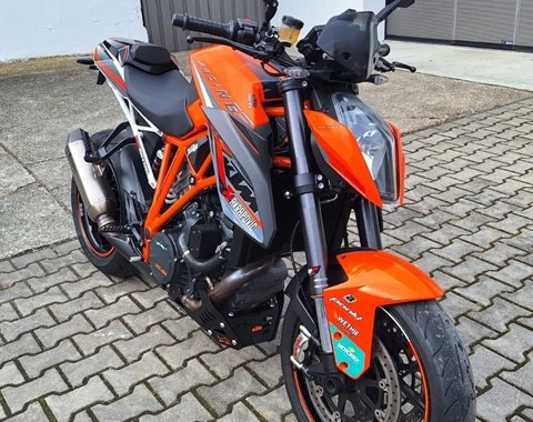 Zum Verkauf steht unsere KTM 1290 Super Duke R mit Erstzulassung im Juni 2014. Das Fahrzeug aus zweiter Hand ist unfallfrei und befindet sich den Kilometern entsprechend in einem sehr gepflegten Zustand. Die Duke wurde regelmäßig beim KTM Händler gewartet, zur Auslieferung machen wir in unserer KTM Vertragswerkstatt noch eine neue Jahresinspektion und auch die HU (TÜV) neu. Die große Inspektion mit Ventilspielkontrolle wurde bereits durchgeführt. Die Reifen befinden sich nahe der Verschleißgrenze und werden auf Wunsch zur Auslieferung noch von uns erneuert. Alle weiteren Verschleißteile sind in gutem Zustand. Zu unseren Geschäftszeiten können Sie das Fahrzeug besichtigen und nach vorheriger Absprache auch Probefahren. Bei weiteren Fragen stehen wir gerne zur Verfügung.