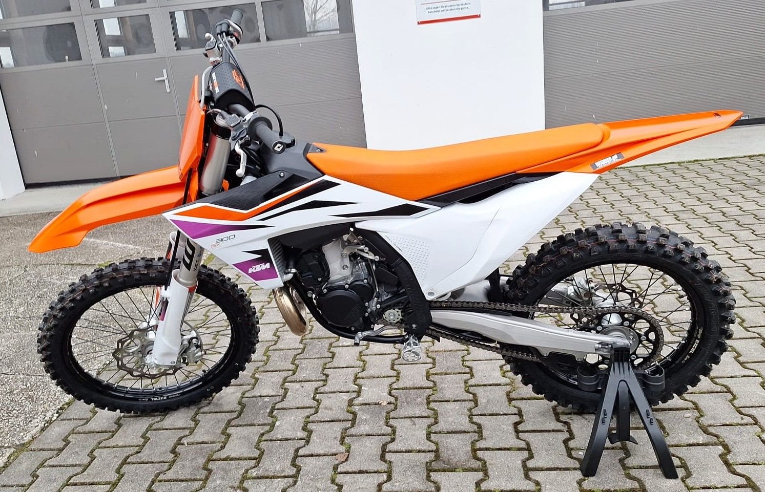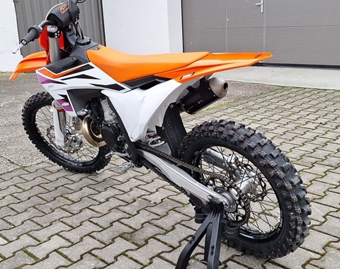 Zum Verkauf steht unsere KTM 300 SX 2024. Das Fahrzeug hat aktuell ca. 6 Betriebsstunden und befindet sich dementsprechend in einem absolut neuwertigen Zustand. Kürzlich wurde bei ca. 5 Betriebsstunden in unserer KTM Vertragswerkstatt ein neuer Service durchgeführt. Auch alle Verschleißteile befinden sich in sehr gutem Zustand. Zu unseren Geschäftszeiten können Sie das Fahrzeug besichtigen. Bei weiteren Fragen stehen wir gerne zur Verfügung.