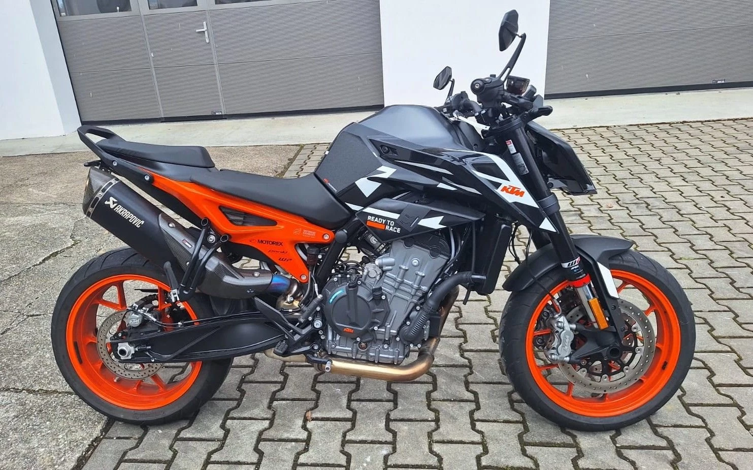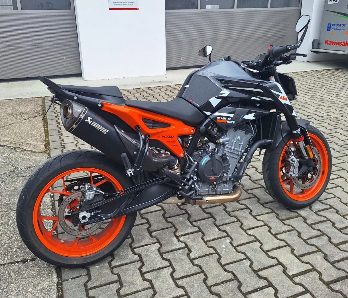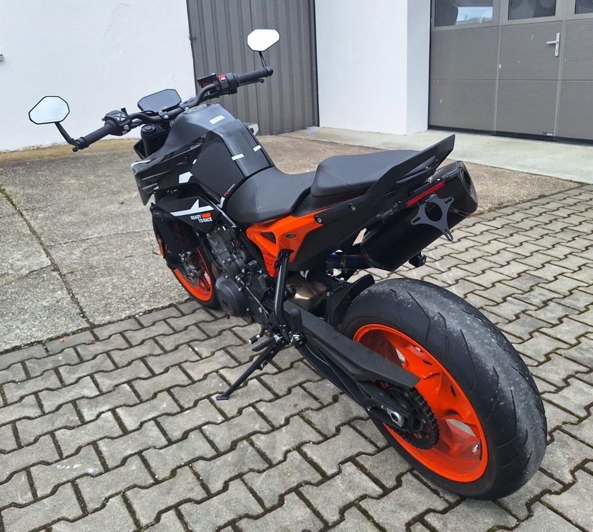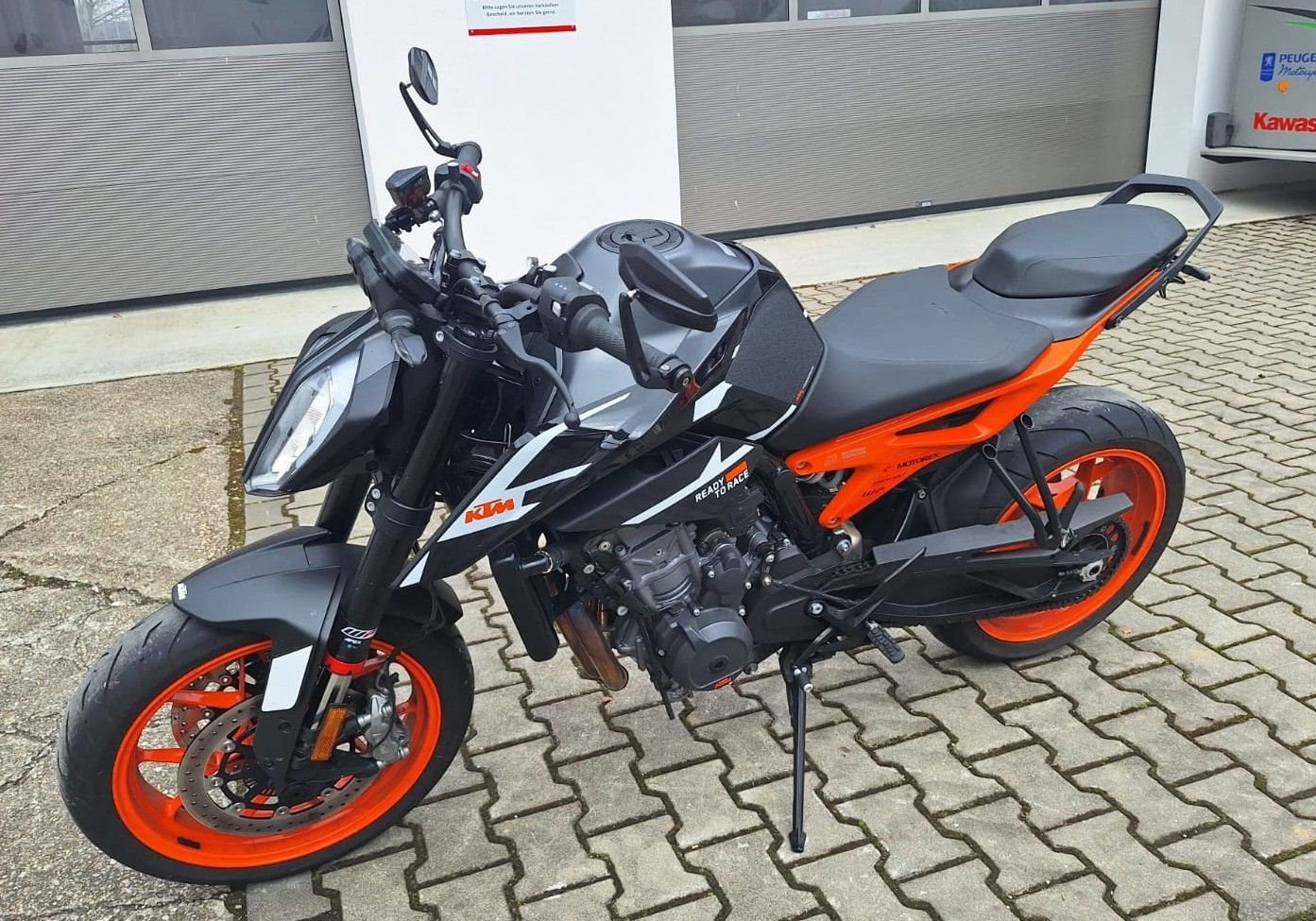 Zum Verkauf steht unsere KTM 890 Duke GP mit Erstzulassung im April 2023. Das Fahrzeug aus zweiter Hand ist um- und unfallfrei und befindet sich den Kilometern entsprechend in einem sehr gepflegten Zustand. Zur Auslieferung machen wir in unserer KTM Vertragswerkstatt noch eine neue Jahresinspektion mit Öl- und Bremsflüssigkeitswechsel. Auch alle Verschleißteile befinden sich in gutem Zustand. Das unten aufgeführte, hochwertige Zubehör im Wert von über 2.000€ ist im Fahrzeugpreis inbegriffen. Zu unseren Geschäftszeiten können Sie das Fahrzeug besichtigen und nach vorheriger Absprache auch Probefahren. Bei weiteren Fragen stehen wir gerne zur Verfügung.