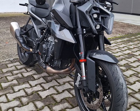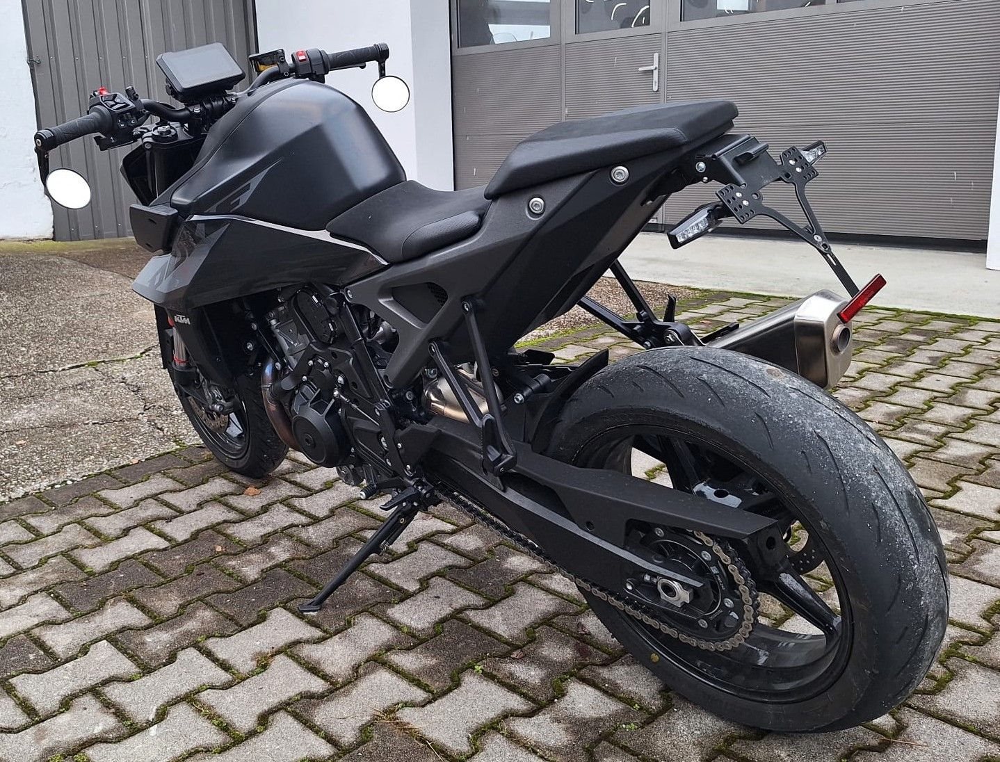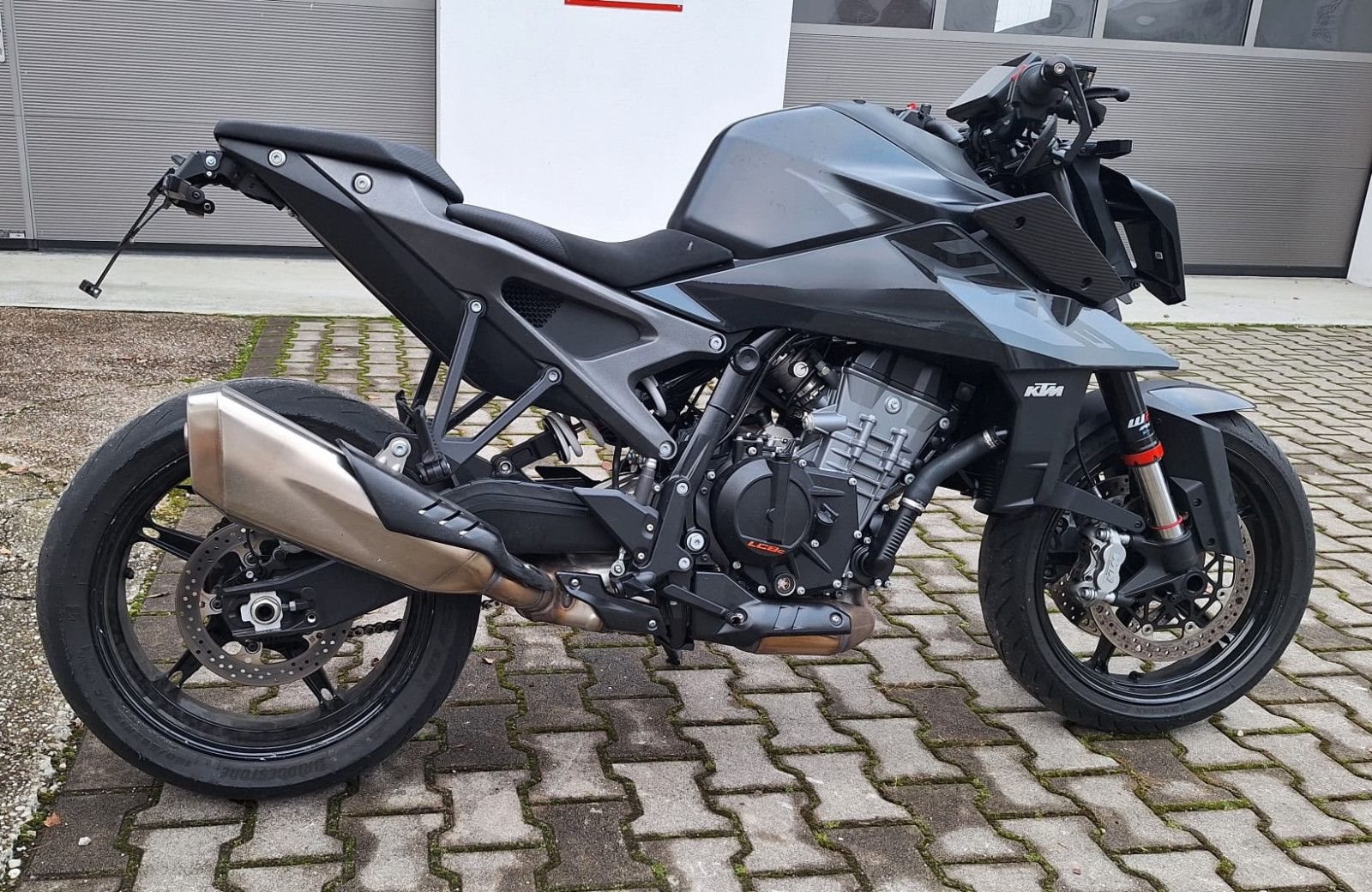 Zum Verkauf steht unsere KTM 990 Duke mit Erstzulassung im September 2025. Das Fahrzeug aus erster Hand (kein Vorführfahrzeug) ist um- und unfallfrei und befindet sich den Kilometern entsprechend in einem neuwertigen Zustand. Die 1.000km Inspektion wurde beim KTM Vertragswerkstatt durchgeführt, die Fahrzeuggarantie läuft noch bis 08/2029. Beide Reifen werden zur Auslieferung von uns erneuert. Auch alle anderen Verschleißteile befinden sich in gutem Zustand. Das unten aufgelistete, hochwertige Zubehör ist im Fahrzeugpreis inbegriffen. Zu unseren Geschäftszeiten können Sie das Fahrzeug besichtigen und nach vorheriger Absprache auch Probefahren. Bei weiteren Fragen stehen wir gerne zur Verfügung.