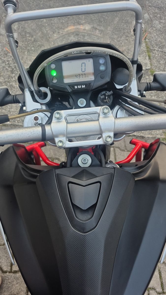 Zum Verkauf steht unsere SWM SuperDual X mit Erstzulassung im Mai 2018. Das Fahrzeug aus erster Hand ist um- und unfallfrei und befindet sich in einem gepflegten Zustand. Zur Auslieferung machen wir in unserer Meisterwerkstatt noch eine neue Inspektion mit Öl- und Bremsflüssigkeitwechsel. Die Reifen befinden sich nahe der Verschleißgrenze, werden aber auf Wunsch zur Auslieferung von uns noch gegen einen neuen Reifensatz getauscht (auf Wunsch On- oder Offroadbereifung). Alle restlichen Verschleißteile befinden sich den wenigen Kilometern entsprechend in einem guten Zustand. Zu unseren Geschäftszeiten können Sie das Fahrzeug besichtigen und nach vorheriger Absprache auch Probefahren. Bei weiteren Fragen stehen wir gerne zur Verfügung.