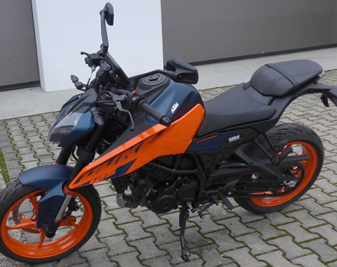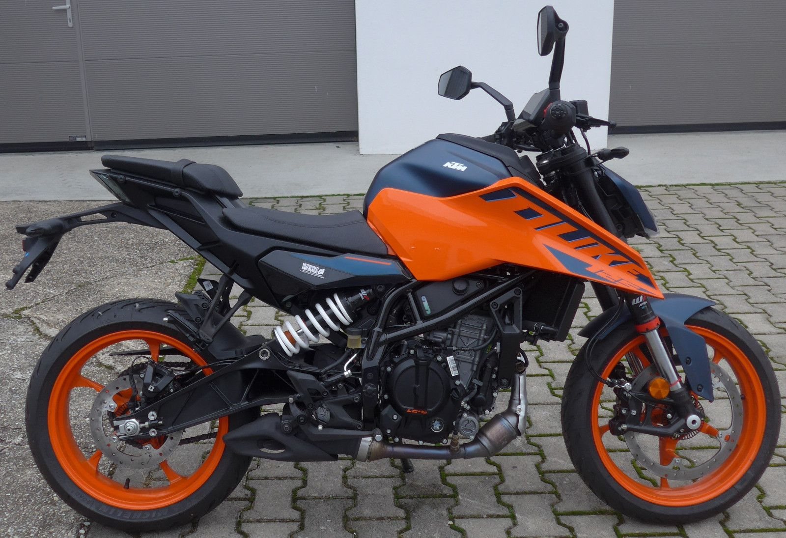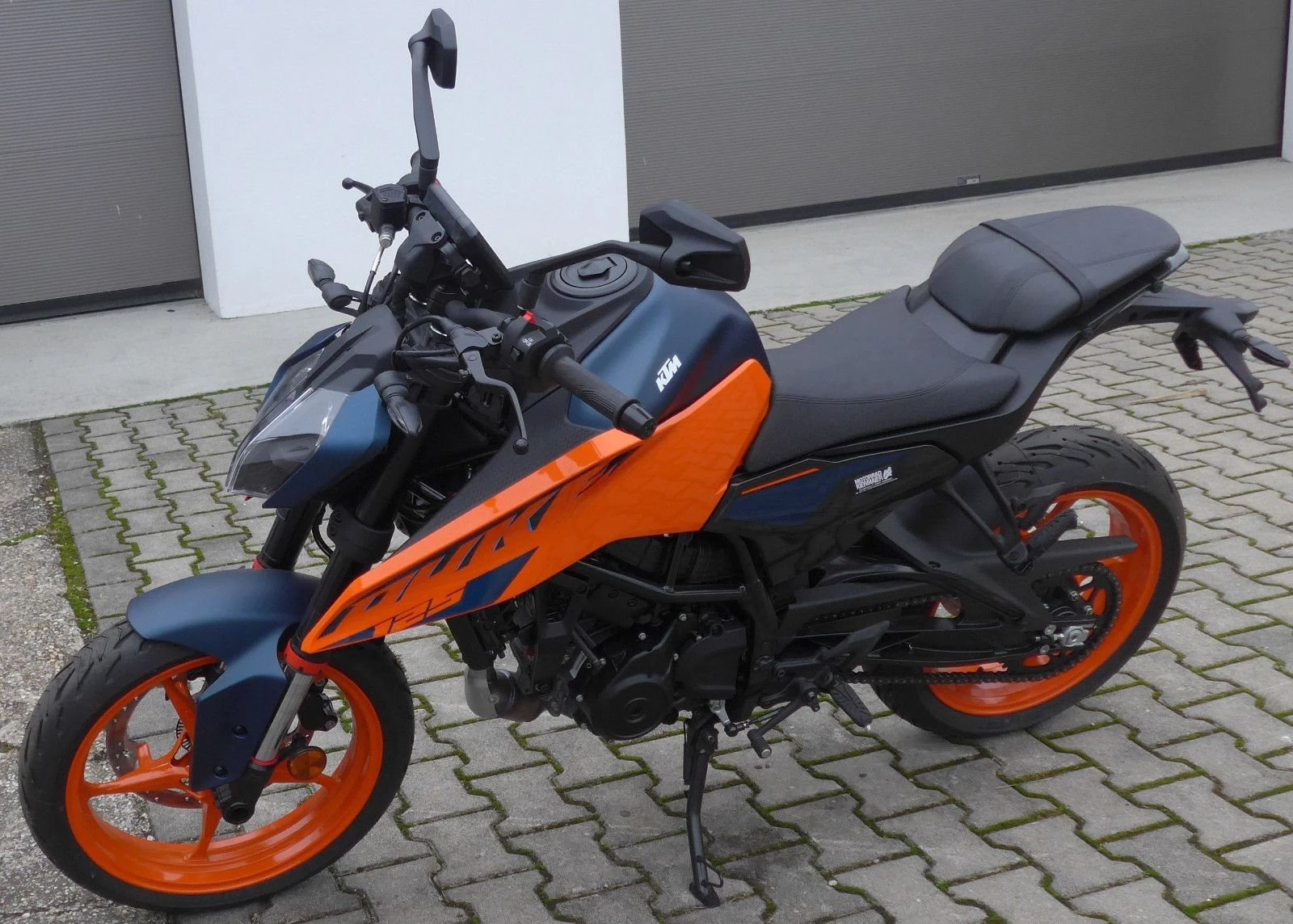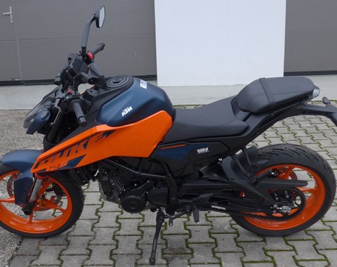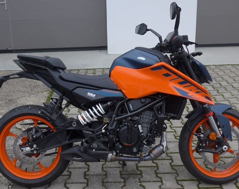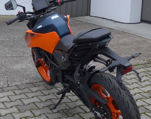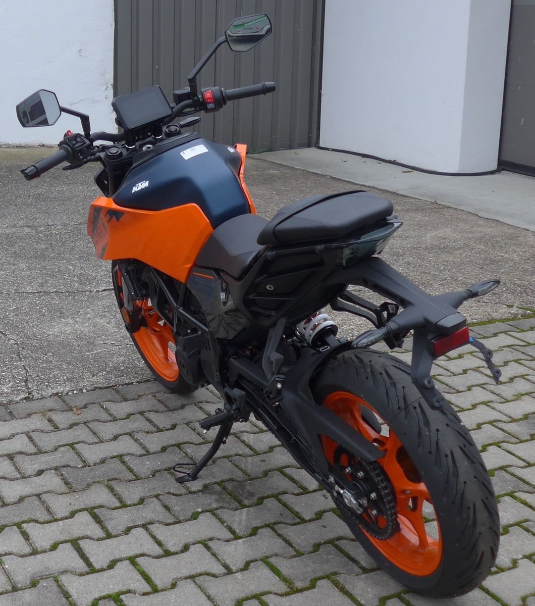 Wir haben die neue 125 Duke ABS Modell 2024 in beiden Farben zum Aktionspreis lagernd vor Ort. Für eine individuelle Farbkombination tauschen wir auch ohne Aufpreis die serienmäßigen Tankverkleidungen gegen eine jeweils andere Farbe (schwarz oder orange). Wir erstellen dir gerne ein Angebot für deine individuelle Konfiguration mit kurzem Kennzeichenhalter, Lenkerendenspiegeln, Akrapovic Auspuff usw. Solltest du noch weitere Fragen haben, stehen wir gerne zur Verfügung.