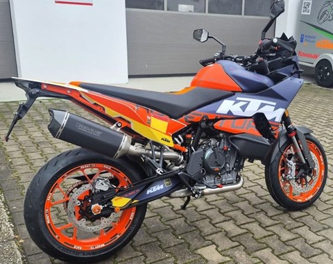 Standard ist nicht dein Geschmack? Wir verkaufen diese 2024er 890 SMT mit unserem SMR-Umbau. Die SMT hat 4 Jahre Herstellergarantie ab Auslieferung. Das Fahrzeug ist mit dem unten aufgeführten, hochwertigen Zubehör im Wert von ca. 3.000€ ausgestattet. Zu unseren Geschäftszeiten können Sie das Fahrzeug besichtigen. Ein Vorführfahrzeug der SMT kann nach vorheriger Absprache Probegefahren werden. Bei weiteren Fragen stehen wir gerne zur Verfügung.