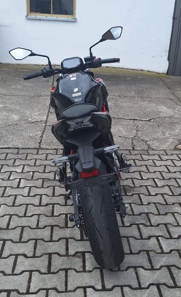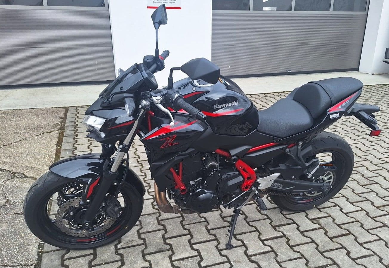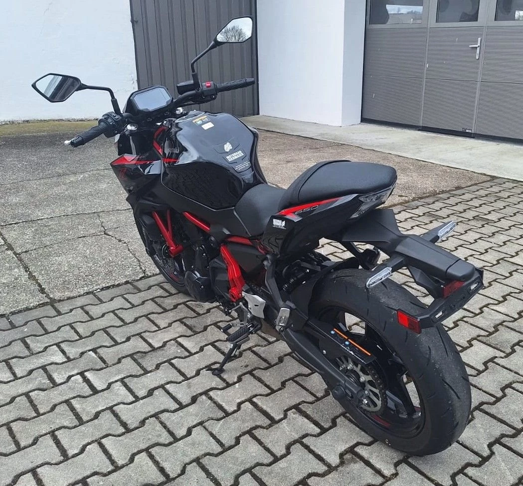Zum Verkauf steht unsere Kawasaki Z 650 mit Erstzulassung im März 2025. Das gepflegte Vorführfahrzeug ist um- und unfallfrei und befindet sich den Kilometern entsprechend in einem neuwertigen Zustand. Die 1.000km Inspektion wurde bereits in unserer Kawasaki Vertragswerkstatt erledigt, dementsprechend läuft die Garantie noch bis 04/2029. Zur Auslieferung machen wir noch eine neue Jahresinspektion. Auch alle Verschleißteile befinden sich in gutem Zustand. Die Drosselung für den A2 Führerschein ist gegen Aufpreis möglich. Zu unserem Geschäftszeiten können Sie das Fahrzeug besichtigen und nach vorheriger Absprache auch Probefahren. Bei weiteren Fragen stehen wir gerne zur Verfügung.