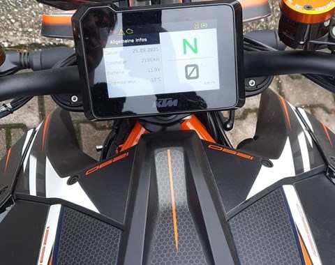 Zum Verkauf steht unsere KTM 1290 Super Duke R mit Erstzulassung im März 2024. Das Fahrzeug aus erster Hand ist um- und unfallfrei und befindet sich den Kilometern entsprechend in einem absolut neuwertigen Zustand. Der 1.000km Service wurde in unserer KTM Vertragswerkstatt durchgeführt, zur Auslieferung machen wir noch eine neue Jahresinspektion mit Öl- und Bremsflüssigkeitswechsel. Auch alle Verschleißteile befinden sich in gutem Zustand. Das unten aufgelistete, hochwertige Zubehör im Wert von über 4.000€ ist im Fahrzeugpreis inbegriffen. Zu unseren Geschäftszeiten können Sie das Fahrzeug besichtigen und nach vorheriger Absprache auch Probefahren. Bei weiteren Fragen stehen wir gerne zur Verfügung.