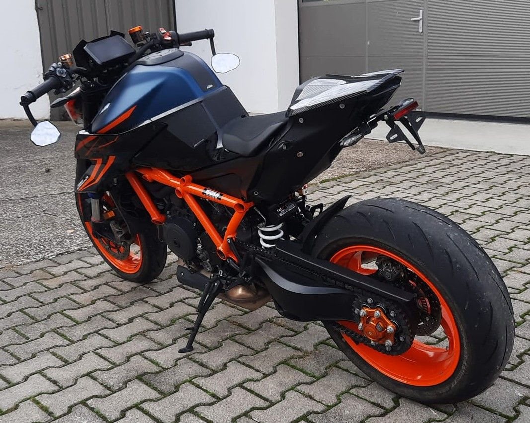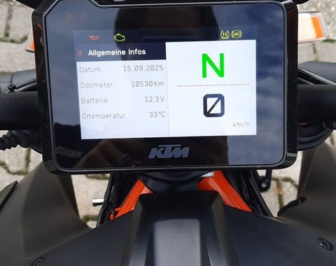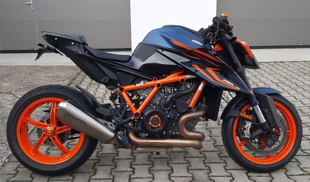 Zum Verkauf steht unsere KTM 1290 Super Duke R EVO mit Erstzulassung im September 2024. Das Fahrzeug aus erster Hand ist um- und unfallfrei und befindet sich den Kilometern entsprechend in einem sehr gepflegten Zustand. Alle Services wurden in unserer KTM Vertragswerkstatt durchgeführt, die Fahrzeuggarantie läuft noch bis 09/2028. Auch alle Verschleißteile befinden sich in gutem Zustand, der Hinterreifen wird zur Auslieferung von uns erneuert. Das unten aufgelistete, hochwertige Zubehör ist im Fahrzeugpreis inbegriffen. Zu unseren Geschäftszeiten können Sie das Fahrzeug besichtigen und nach vorheriger Absprache auch Probefahren. Bei weiteren Fragen stehen wir gerne zur Verfügung.