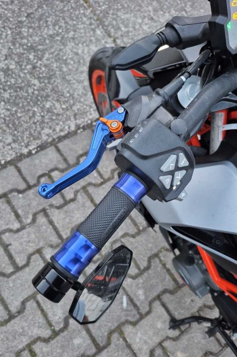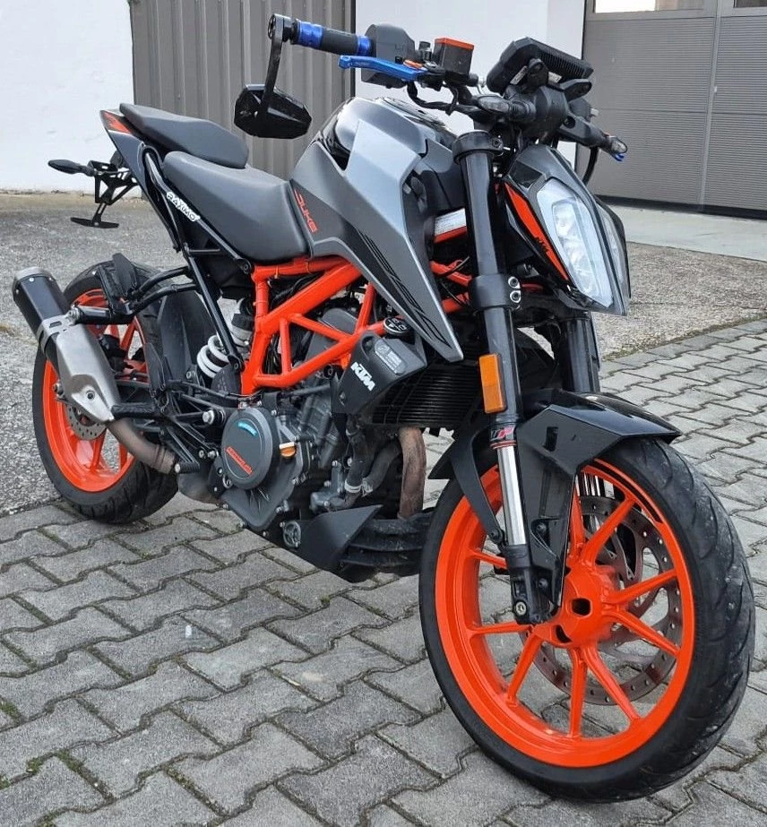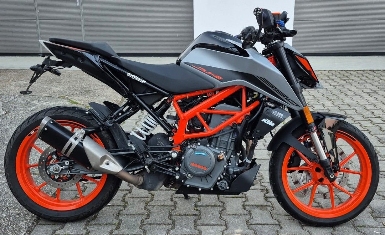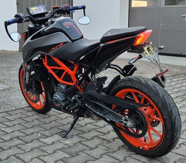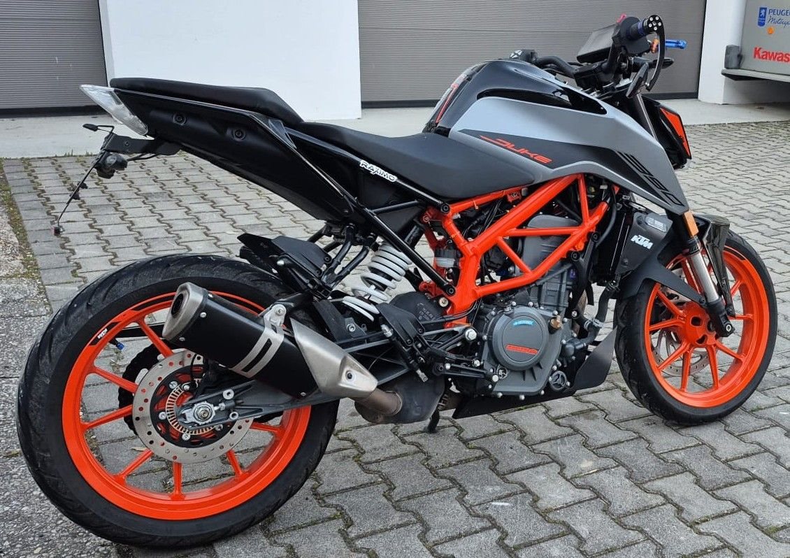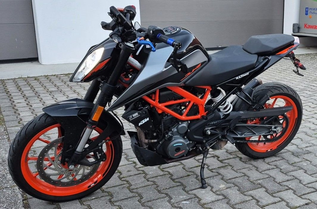 Zum Verkauf steht unsere KTM 390 Duke mit Erstzulassung im März 2022. Das Fahrzeug aus zweiter Hand ist um- und unfallfrei und befindet sich den Kilometern entsprechend in einem gepflegten Zustand. Die Fahrzeuggarantie wurde von der Vorbesitzerin bis 03/2026 verlängert. Das unten aufgelistete Zubehör ist im Preis inbegriffen. Auch alle weiteren Verschleißteile befinden sich in gutem Zustand. Zu unseren Geschäftszeiten können Sie das Fahrzeug besichtigen und nach vorheriger Absprache auch Probefahren. Bei weiteren Fragen stehen wir gerne zur Verfügung.
